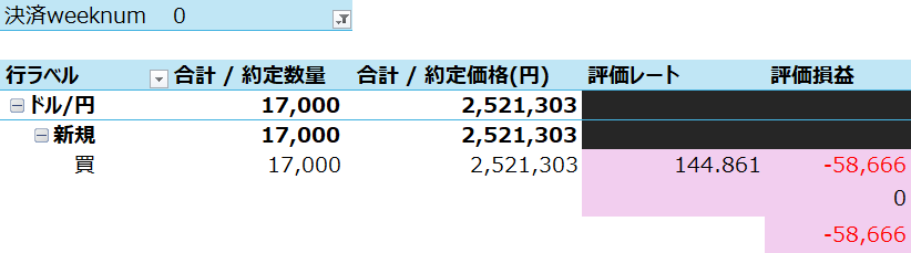 建玉残ですが、今週も週足が陽線だったので、先週末の買い玉21単位のうち12単位も決済され、今週5つ積み上げたので、買い玉残は17単位。