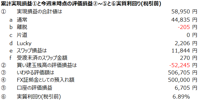 スワップでは1,317円、これは先週の半分。理由は、日本休日でスワップが取れない日が5日中2日もあったからだな。