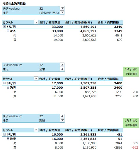 ということで、日別の決済損益を記録しておくと、月曜 792円、火曜777円、水曜 1,000円、木曜 186円!、金曜 594円、でした。