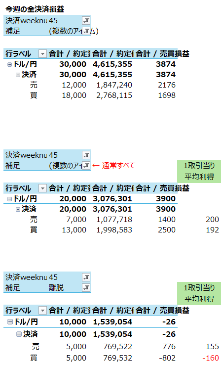 一週間の両建てエントリー最低数が7であるわけで、買い決済が13ということは1.9回転しかしてないので、やっぱり成績はよくないわけです
