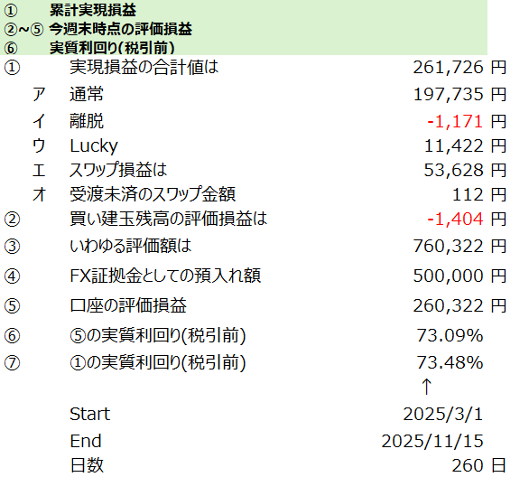 とはいえ、⑤も少しは気になるわけで、評価損益も含めた⑥実質利回りは、+73.09% となりました。