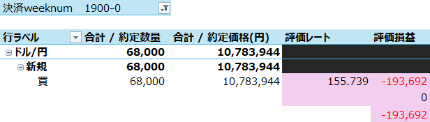 先週末の買い建残は48千(12件)でしたが、先週の建玉を2件決済し、今週建てた玉7件が増えて、17件。 4千*17=68千。
